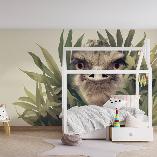 KidsWallAmenez un soupçon d'exotisme dans la chambre de votre enfant avec ce papier peint pour enfants représentant une autruche espiègle entourée d'une vé...