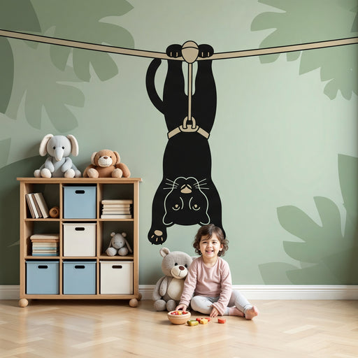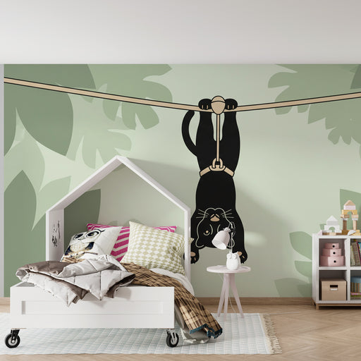 KidsWallPlongez dans un univers ludique avec ce papier peint pour enfants mettant en scène une adorable panthère suspendue dans les airs, prête à vivre de ...