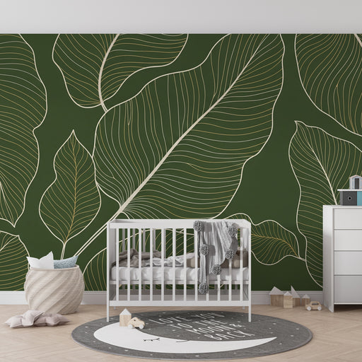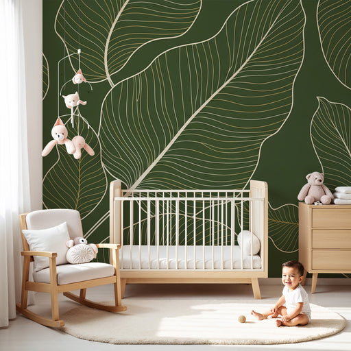 Afficher tous les détailsPapier peint chambre enfant | Feuilles délicates sur fond vert