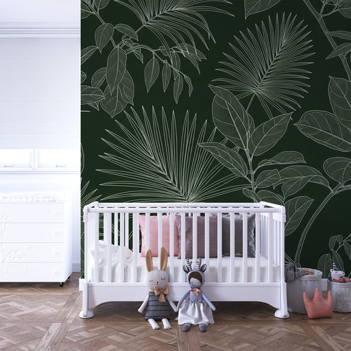 Afficher tous les détailsPapier peint chambre enfant | Feuilles tropicales en contours élégants