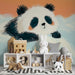 Le fond aux teintes pastel, mêlant des nuances d'orange et de bleu, évoque les douces heures du coucher de soleil, apportant chaleur et réconfort à la pièce. Les détails délicats du panda, ainsi que les textures infantiles des nuages, ajoutent une touche ludique et charmante à cet espace.