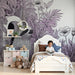 Créez un univers tendre et apaisant dans la chambre de votre bébé avec ce papier peint pour bébé mettant en scène un adorable paresseux parmi une végétation luxuriante et colorée. Les touches de violet et de rose des fleurs entourant ce charmant animal ajoutent une dimension douce et rêveuse à la décoration.