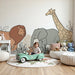 Papier peint chambre enfant | Animaux de la savane et végétation en dessin