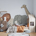 Transformez la chambre de votre enfant en une véritable aventure avec ce papier peint pour enfants qui met en scène des animaux majestueux de la savane. Un lion imposant, un éléphant doux et une girafe élégante se tiennent fièrement parmi une végétation luxuriante. Chaque animal est représenté dans un style illustratif délicat qui stimule l'imagination des petits.