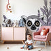 Papier peint chambre enfant | Curieux lemurien et feuillage violet