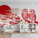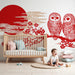 Papier peint chambre enfant | Hiboux et cerisiers japonais