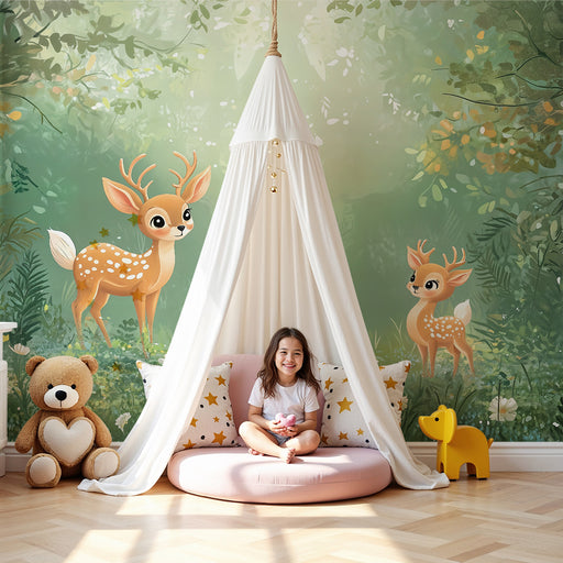 KidsWallApportez la magie de la forêt dans la chambre de votre enfant avec notre papier peint faons enchantés et forêt florale. Ce design captivant présent...