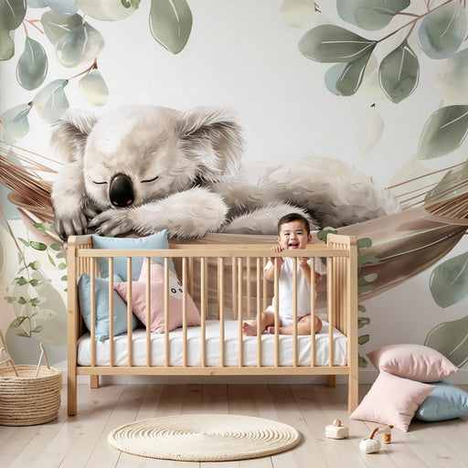 KidsWallTransformez la chambre de votre bébé en un havre de paix avec notre papier peint enchanteur. Ce design captivant met en scène un koala endormi dans...