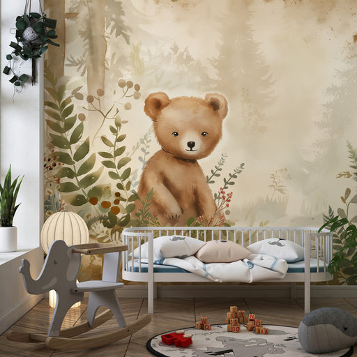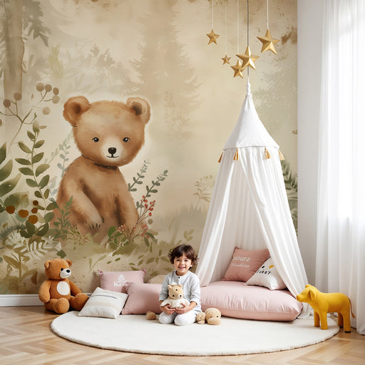 KidsWallTransformez la chambre de votre bébé en un havre de paix avec notre papier peint enchanteur. Ce design captivant met en scène un ourson curieux exp...