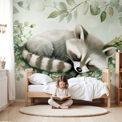 KidsWallOffrez à votre chambre bébé une touche de douceur et de nature avec notre papier peint unique. Ce design enchanteur met en scène un raton-laveur bl...