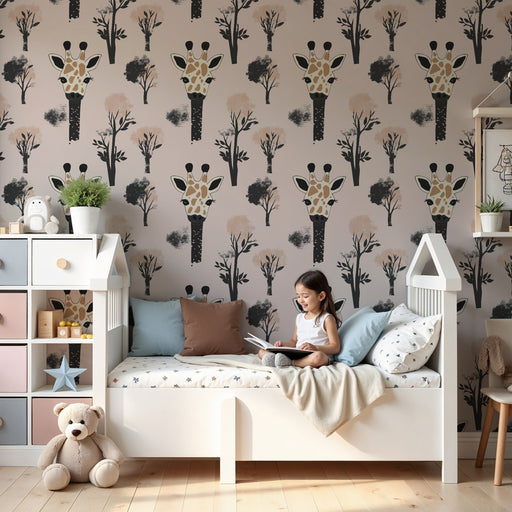 KidsWallTransformez l'espace de votre enfant avec ce papier peint charmant pour chambre d enfant, mettant en vedette de délicieuses girafes aux sourires es...