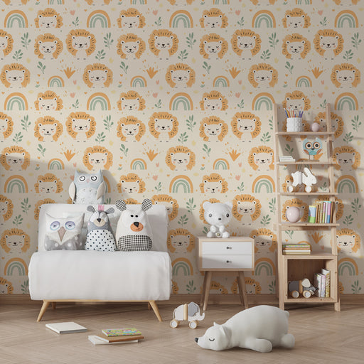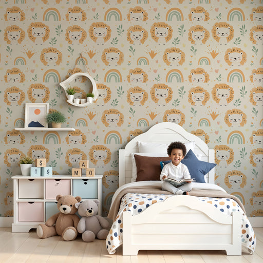 KidsWallOffrez à votre enfant un univers enchanteur avec notre papier peint aux motifs captivants de lions joyeux et d'arcs-en-ciel colorés. Ce design uniq...