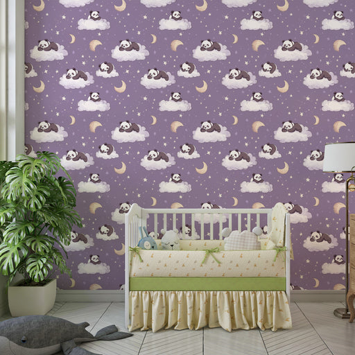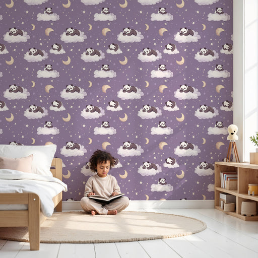 KidsWallOffrez à votre enfant un univers doux et rêveur avec ce papier peint pour chambre d enfant orné de charmants pandas se prélassant sur des nuages mo...