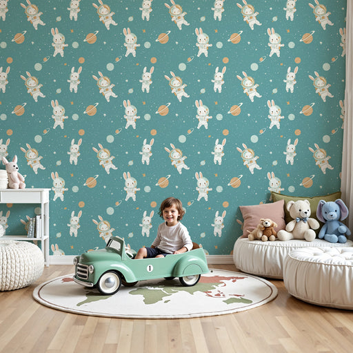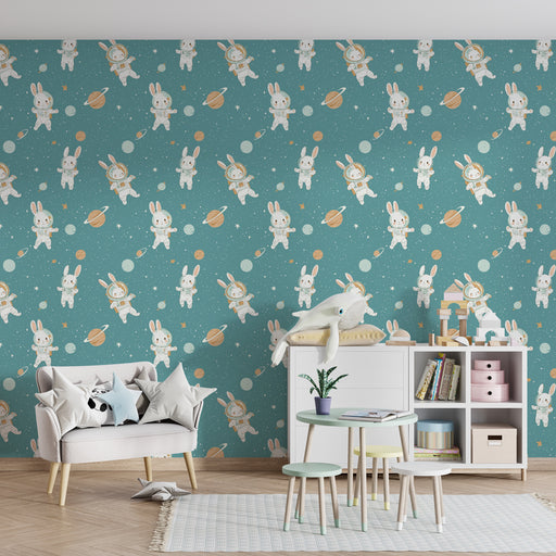 KidsWallTransformez la chambre de votre petit rêveur avec ce papier peint pour chambre d enfant mettant en vedette de charmants lapins astronautes. Dans un...
