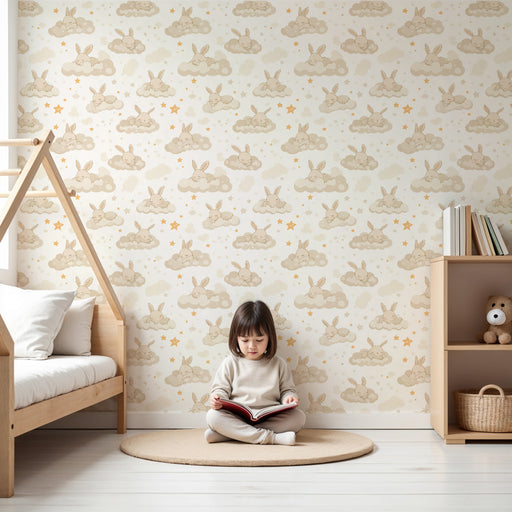 KidsWallTransformez la chambre de votre enfant avec ce papier peint enchanteur, où de doux lapins se prélassent sur des nuages cotonneux. Conçu avec des te...