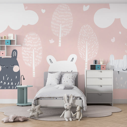 KidsWallOffrez à votre enfant un monde féerique et réconfortant avec ce papier peint pour chambre bébé, où de tendres renards et lapins se reposent paisibl...
