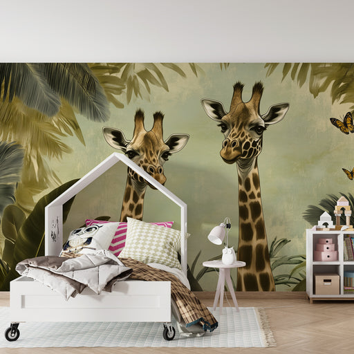 Papier peint chambre enfant | Girafes élégantes dans une jungle tropicale