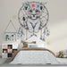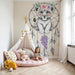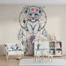 Renouvelez la chambre de votre bébé en un mignon cocon avec ce papier peint pour bébé charmant, mettant en scène un adorable lionceau perché dans un attrape-rêves. Avec une couronne de fleurs délicates et des plumes flottantes, ce design enchanteur évoque un monde de douceur et de rêve.