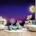 Papier peint chambre bébé | Fleurs délicates sur fond violet apaisant