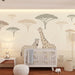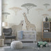 Papier peint chambre bébé | Girafe zèbre et lionceau dans un paysage apaisant