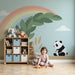 Plongez votre bébé dans un univers enchanteur avec ce papier peint pour chambre de bébé. Un adorable panda s'assoit paisiblement sous un arc-en-ciel éclatant, entouré de feuillages délicats et d'une mystérieuse mignonne coffre au trésor. Ce design ludique et coloré stimule l'imagination des tout-petits tout en créant une ambiance chaleureuse et accueillante.
