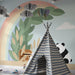 Papier peint chambre bébé | Panda et arc-en-ciel dans un monde magique
