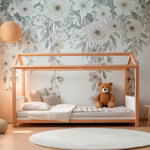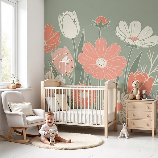 KidsWallApportez une touche de douceur et de sérénité dans la chambre de votre bébé avec ce papier peint pour bébé orné de fleurs délicates. Sur un fond ve...