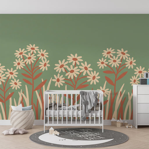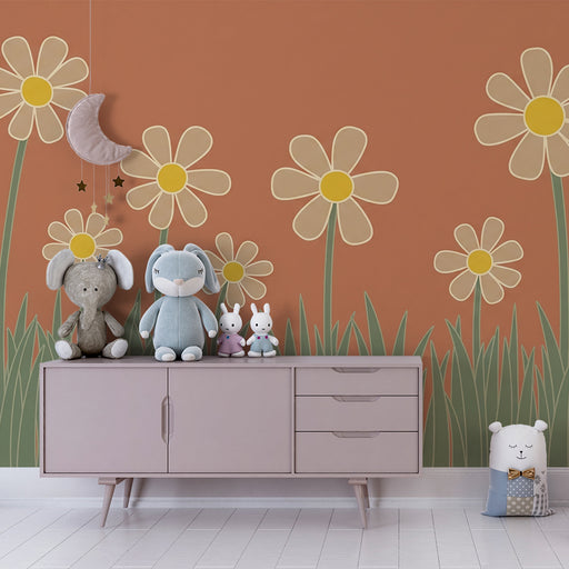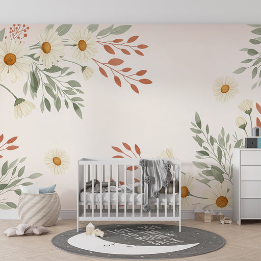 Afficher tous les détailsPapier peint chambre bébé | Fleurs marguerites et terracotta