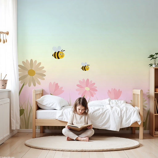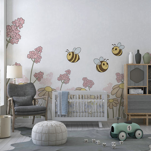 KidsWallTransformez la chambre de votre bébé en un jardin enchanté avec ce papier peint pour bébé qui met en scène de délicates fleurs roses et des abeille...