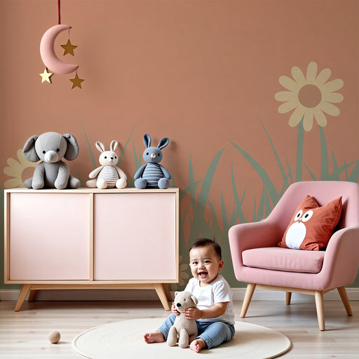 KidsWallRenouvelez la chambre de votre bébé en un mignon cocon avec ce papier peint pour bébé représentant des fleurs délicates émergeant d'une douce prair...