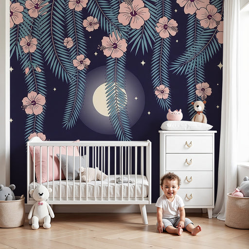 Afficher tous les détailsPapier peint chambre bébé | Fleurs exotiques sous la lune