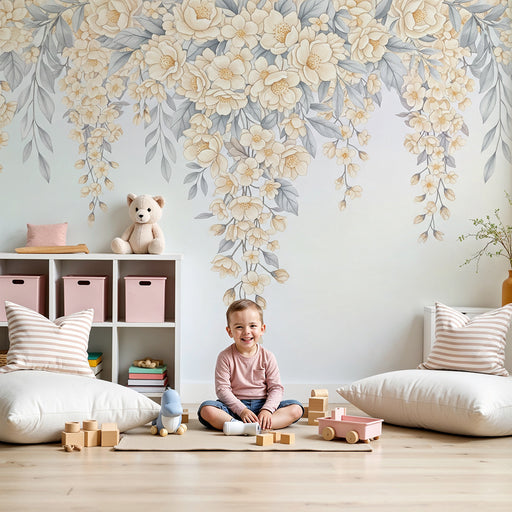 Afficher tous les détailsPapier peint chambre bébé | Fleurs et feuillage tombant