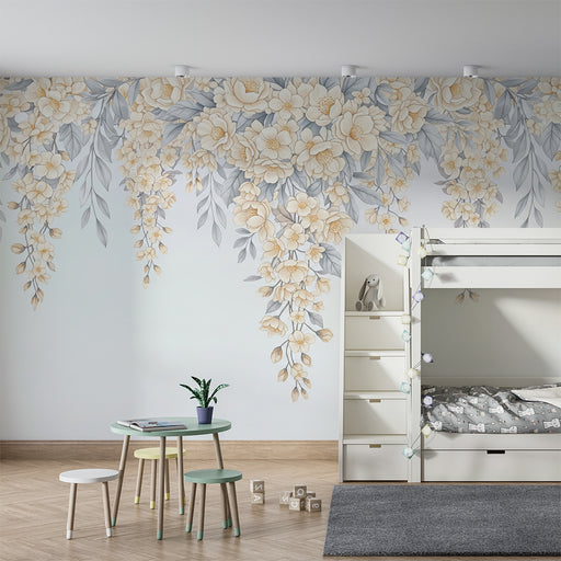 Afficher tous les détailsPapier peint chambre bébé | Fleurs grises et jaunes tombantes