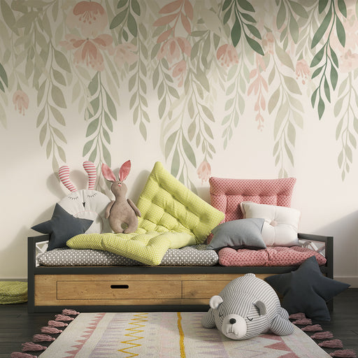 Afficher tous les détailsPapier peint chambre bébé | Fleurs et feuillage tombant tout en pastel