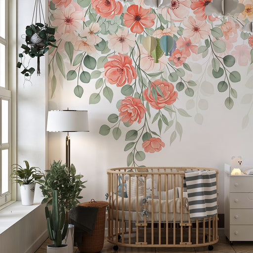 Afficher tous les détailsPapier peint chambre bébé | Fleurs rouges et roses tombantes