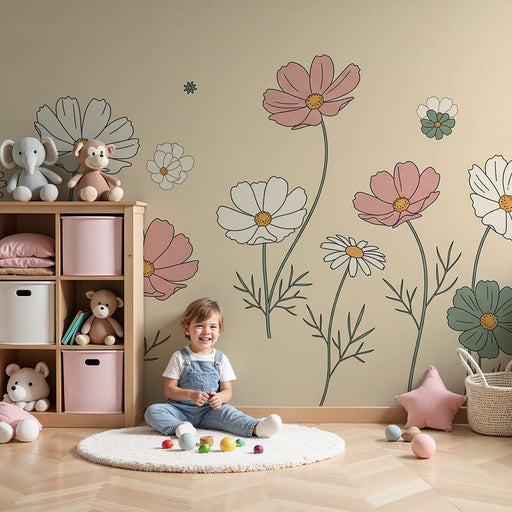 KidsWallRedessinez la chambre de votre bébé en un lieu trop mignon avec ce papier peint pour bébé orné de fleurs délicates. Les pétales pastel de cosmos et...