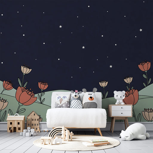 KidsWallRenouvelez la chambre de votre bébé en un mignon cocon avec ce papier peint pour bébé représentant un champ de fleurs délicates sous un ciel étoilé...