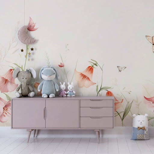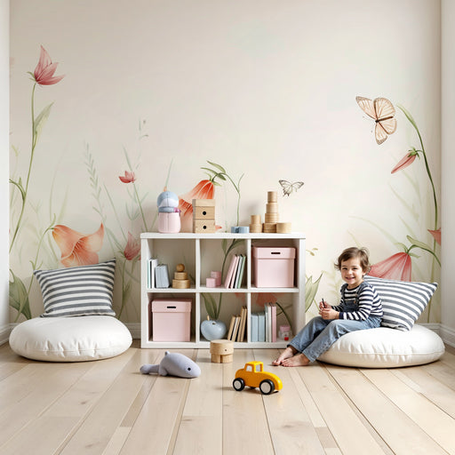 KidsWallPapier peint chambre bébé | Douceur florale et papillons en vol