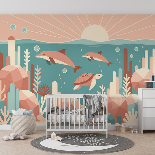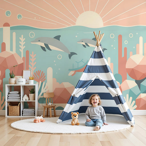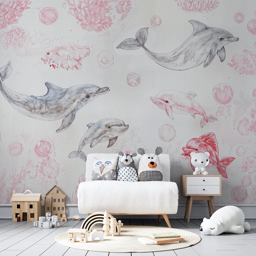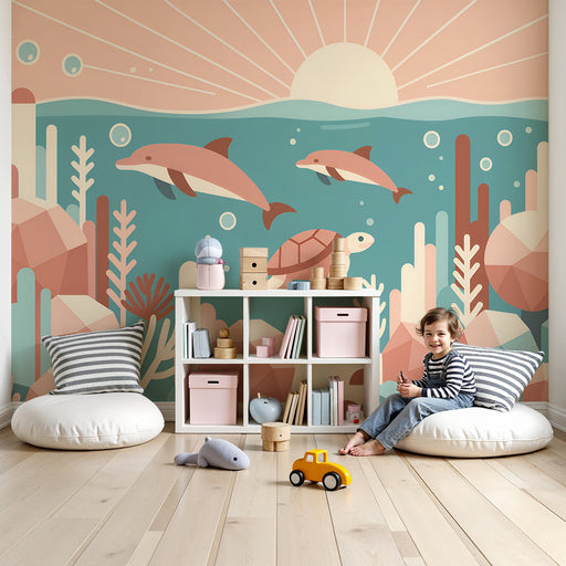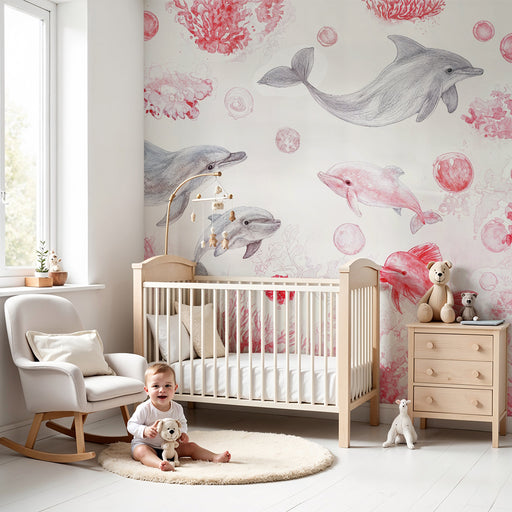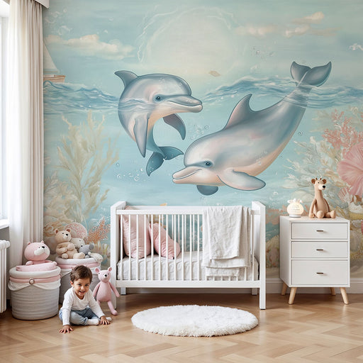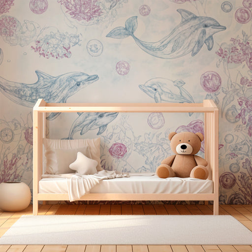 KidsWallTransformez la chambre de votre enfant en un paradis sous-marin enchanté avec notre papier peint dauphins et coraux pastel. Ce design délicat et ar...