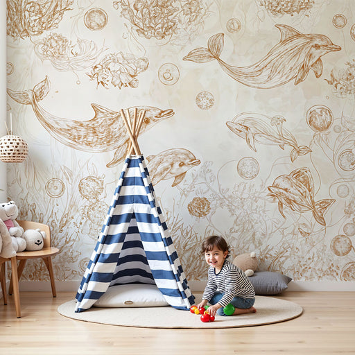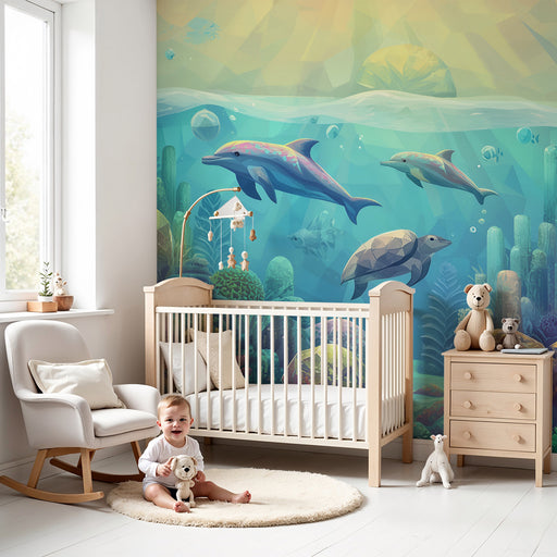 KidsWallPlongez dans un monde sous-marin fascinant avec ce papier peint pour enfants mettant en scène des dauphins espiègles et des tortues délicates. Ce d...