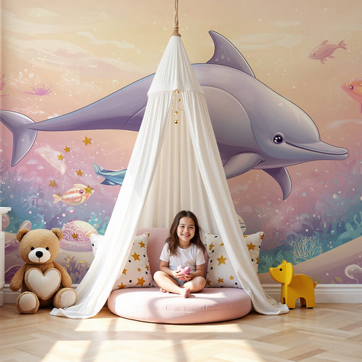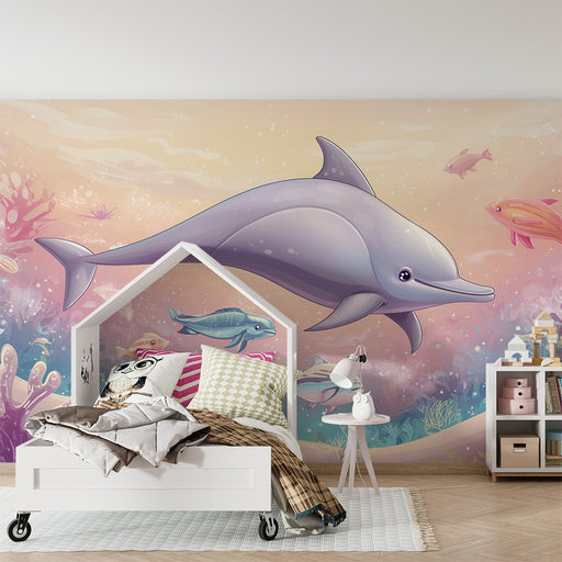 KidsWallPlongez votre enfant dans un monde magique avec ce papier peint pour enfants représentant un dauphin joyeux évoluant dans un océan de couleurs past...