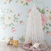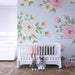 Les teintes pastel des fleurs, allant du rose tendre au blanc éclatant, s'harmonisent parfaitement avec le fond délicat, offrant une atmosphère sereine et accueillante. Les détails raffinés des feuilles et des boutons de fleurs ajoutent une dimension artistique, rendant ce décor idéal pour stimuler l'imagination de votre petit.