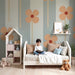 Les rayures aux nuances de bleu et de crème ajoutent une dimension moderne tout en restant délicates, parfaites pour un univers de rêve. Ce décor floral est idéal pour stimuler l'imagination de votre petit tout en offrant une ambiance sereine et chaleureuse.
