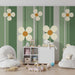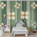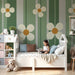 Papier peint chambre bébé | Fleurs délicates sur fond rayé vert et beige