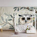 Papier peint chambre enfant | Hibou mystérieux et feuilles naturelles
