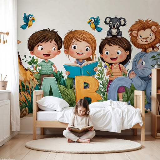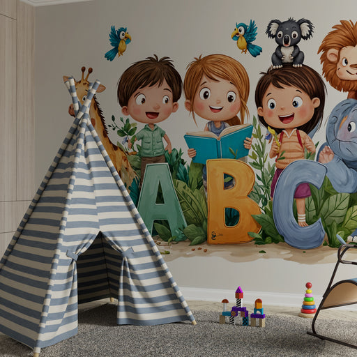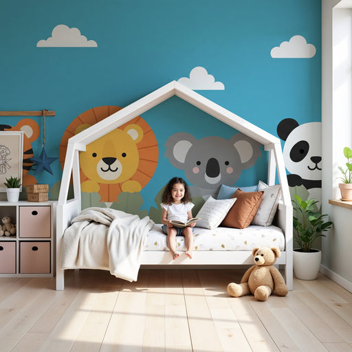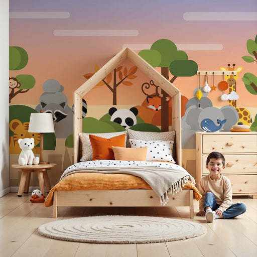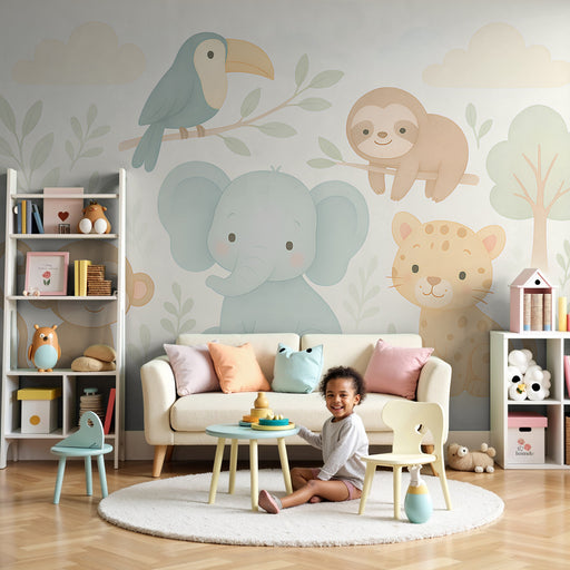 KidsWallEmbarquez votre enfant dans une aventure douce et colorée avec ce papier peint pour chambre d'enfant mettant en scène des animaux adorables de la j...