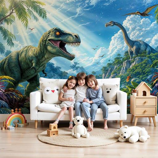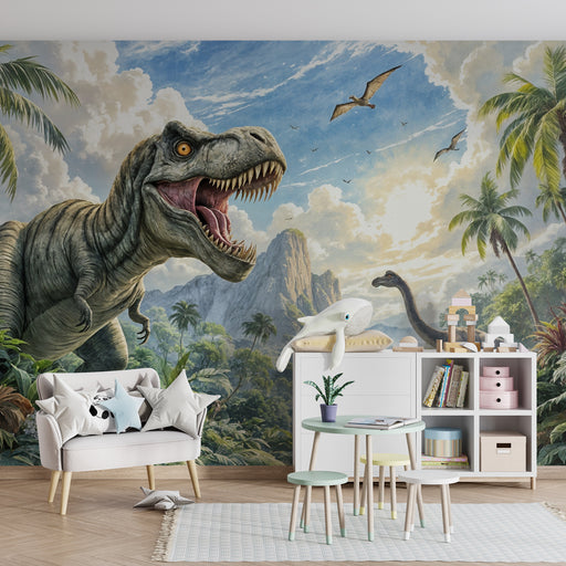 KidsWallPapier peint chambre enfant | Dinosaures majestueux dans une jungle préhistorique