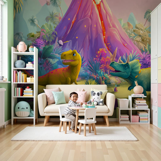 KidsWallPapier peint chambre enfant | Dinosaures mignons et jungle préhistorique
