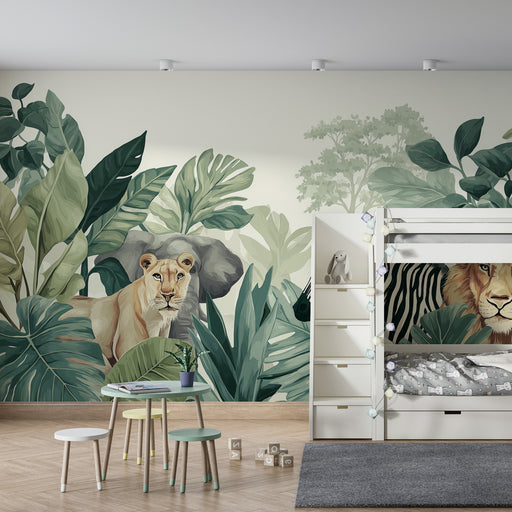 KidsWallPlongez votre enfant dans un monde féérique avec ce papier peint pour chambre d'enfant représentant des animaux adorables dans une jungle luxuriant...