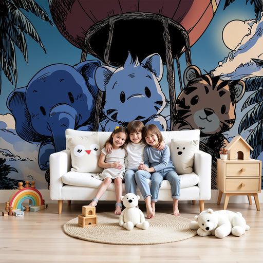 KidsWallTransformez la chambre de votre enfant en un monde fantastique avec ce papier peint pour enfants mettant en scène de charmants animaux en montgolfi...